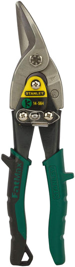 La tijera Avia Stanley 14-564 con filo curvado hacia la derecha permite cortes circulares o angulados en láminas metálicas. Ofrece control, seguridad y precisión en cada maniobra.