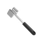 Herramienta robusta con cabeza metálica y mango ergonómico, ideal para golpear cortes duros y ablandarlos. Sus puntas distribuyen la fuerza sin desgarrar la carne.