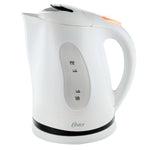 Hervidor eléctrico Oster blanco de 1.7 litros. Hierve agua rápidamente con apagado automático y base giratoria 360°.