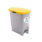 El Basurero Eco Bin de 22 litros en color amarillo de Araven está fabricado con plástico 100% reciclado, ofreciendo una solución ecológica para la gestión de residuos. Cuenta con un pedal para una apertura higiénica y la posibilidad de unir varios contenedores, facilitando la separación de residuos en diferentes fracciones.