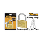 Candado bronce 70 mm Ingco DBPL0702. Ideal para asegurar portones o bodegas.