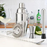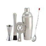 Incluye coctelera, medidor, cuchara de bar, colador y exprimidor, todos en acero inoxidable. Diseñado para preparar cócteles con estilo profesional desde casa.