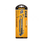 Cuchillo cartonero Ingco HKNS16518. Mango ergonómico y hoja retráctil.