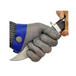 Guante profesional con malla metálica, diseñado para proteger de cortes al manipular alimentos o al usar herramientas. Ofrece alta resistencia y ventilación, sin sacrificar libertad de movimiento.