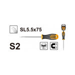 Destornillador pala 5.5 x 75 mm Ingco HS685075. Uso general con mango ergonómico.