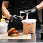 El Dispensador de Salsa de 1.5 litros de Araven es ideal para servir salsas, aderezos y jarabes. Su diseño vertical facilita el uso y evita derrames accidentales. Cuenta con una válvula de cierre que mantiene el circuito de bombeo cerrado, mejorando la conservacion del producto incluso en almacenamiento en frío. Además, reduce el nivel de desperdicios al dispensar solo la cantidad necesaria.