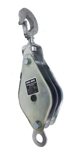 Roldana doble Gan Mar de 80 mm con seguro. Versátil para sistemas de carga intermedios con fijación segura.