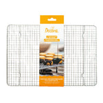 La rejilla para enfriar de Decora permite un enfriamiento uniforme de tortas, panes y galletas, gracias a su estructura de acero con diseño de rejilla elevada. Su formato rectangular de 38 x 26 cm ofrece una superficie amplia y estable para colocar múltiples preparaciones sin que se humedezcan en la base.