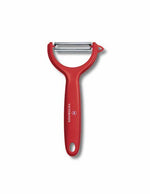 Pelador dentado rojo para tomates y kiwis, filo curvo.
