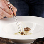 Esta pinza de acero inoxidable de 20 cm está diseñada para tareas precisas en cocina, como el emplatado de ingredientes delicados. Su punta fina y estriada asegura una manipulación firme sin dañar los alimentos.