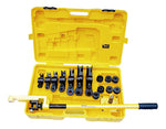 Curvadora de tubos para montaje en piso, compatible con diámetros de 3/8 a 1 pulgada. Sistema hidráulico que facilita el doblado con precisión.