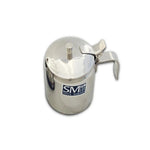 Azucarero con asa de 250 cc de SM, diseñado en acero inoxidable para combinar durabilidad con elegancia. Su tapa ajustada y el cómodo asa permiten un manejo seguro y presentación impecable en la mesa.