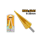 Broca escalonada 6-38 mm Ingco AKSDS63803. Ideal para perforaciones progresivas en metal.
