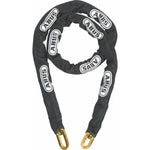 Cadena de seguridad ABUS modelo 10KS de 140 cm de largo, fabricada en acero cementado de alta resistencia. Los eslabones cuadrados de 10 mm evitan cortes fáciles con herramientas manuales y cuentan con tratamiento anticorrosión. Incluye funda textil para proteger superficies pintadas o cromadas.