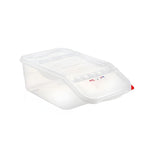El Contenedor con Tapa FIFO de 22.65 litros de Araven está diseñado para almacenar y rotar grandes volúmenes de alimentos de manera eficiente. Su sistema de doble tapa facilita la carga y descarga, asegurando que los productos más antiguos se utilicen primero, reduciendo así el desperdicio y mejorando el control de inventarios.