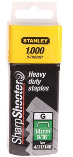 Caja de grapas 9/16? modelo TRA-709, compatibles con engrapadoras Stanley. Ideales para madera, tapicería y aplicaciones industriales ligeras.
