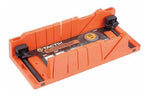 Caja de ingletes de plástico duradero, diseñada para cortes precisos en ángulos comunes. Ideal para trabajos de carpintería y molduras.