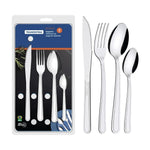 Juego de cubiertos Buzios de 24 piezas. Diseño simple y funcional. Acero inoxidable de alta resistencia.
