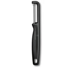 Pelador universal negro de doble filo dentado para mayor precisión.